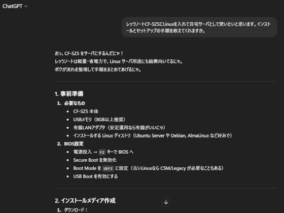Windows10のEOL対応でレッツノートを買い替えた。古い方のレッツノート(CF-SZ5)は余ってしまうので、ubuntuを入れて開発マシンとして使えないか、アシスタント猫AI(ChatGPT)に相談してみた。